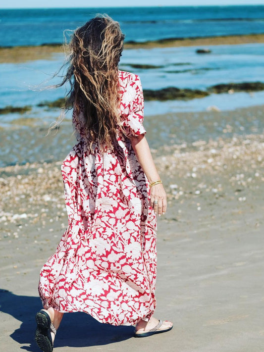 Long Kimono Robe - Floral Block Print - Thistle - Available in 2 Colourways