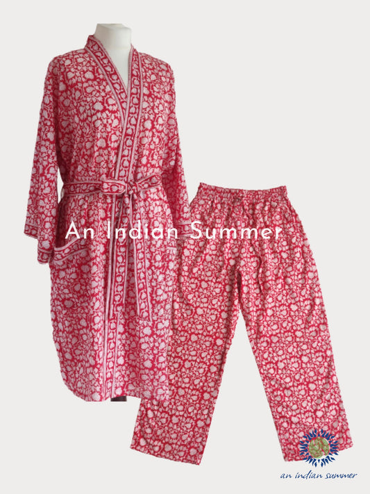 Lounge Set Nalini Red - Short Kimono Robe & Lounge Pants