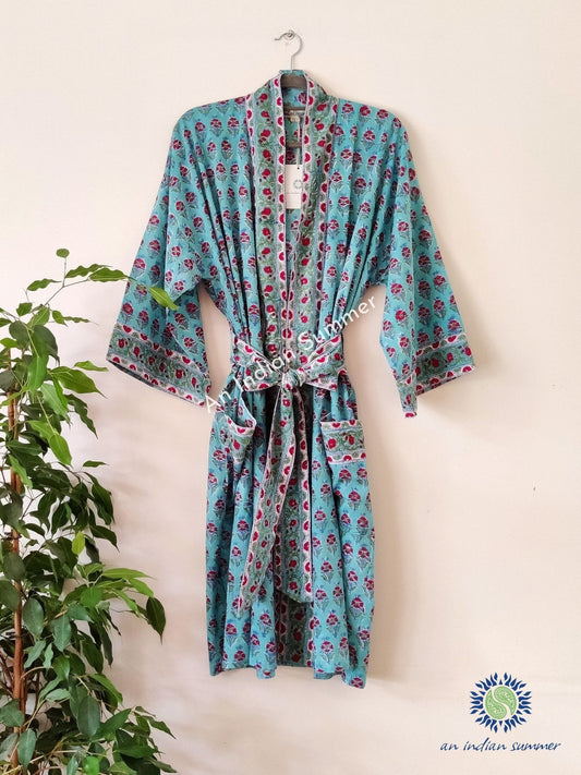 Kimono Robe - Paisley Block Print - Blue & Green - Available in 2 Lengths