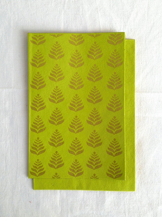 Motif fougère dorée - Ensemble de 5 cartes imprimées à la main - Chartreuse Lime