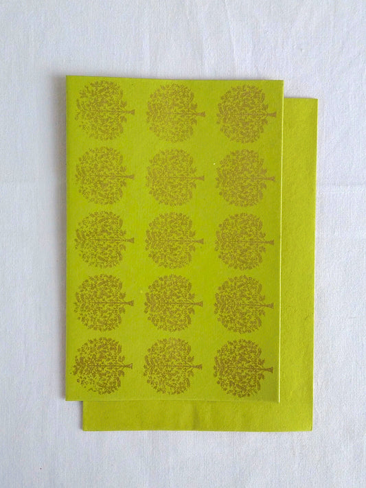 Motif arbre d’or - Ensemble de 5 cartes imprimées à la main - Chartreuse Lime