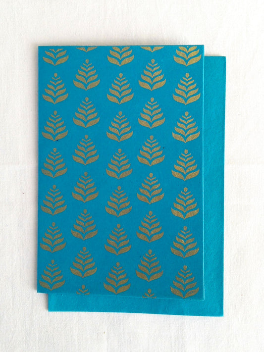 Motif fougère dorée - Ensemble de 5 cartes imprimées à la main - Firoza Turquoise