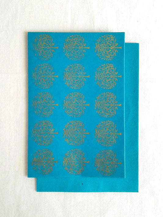 Motif arbre d’or - Ensemble de 5 cartes imprimées à la main - Firoza Turquoise