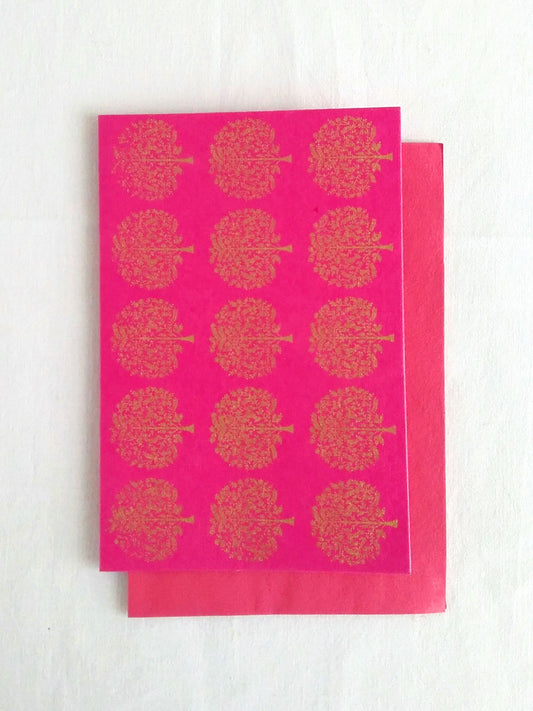 Motif arbre d’or - Ensemble de 5 cartes imprimées à la main - Rani Pink