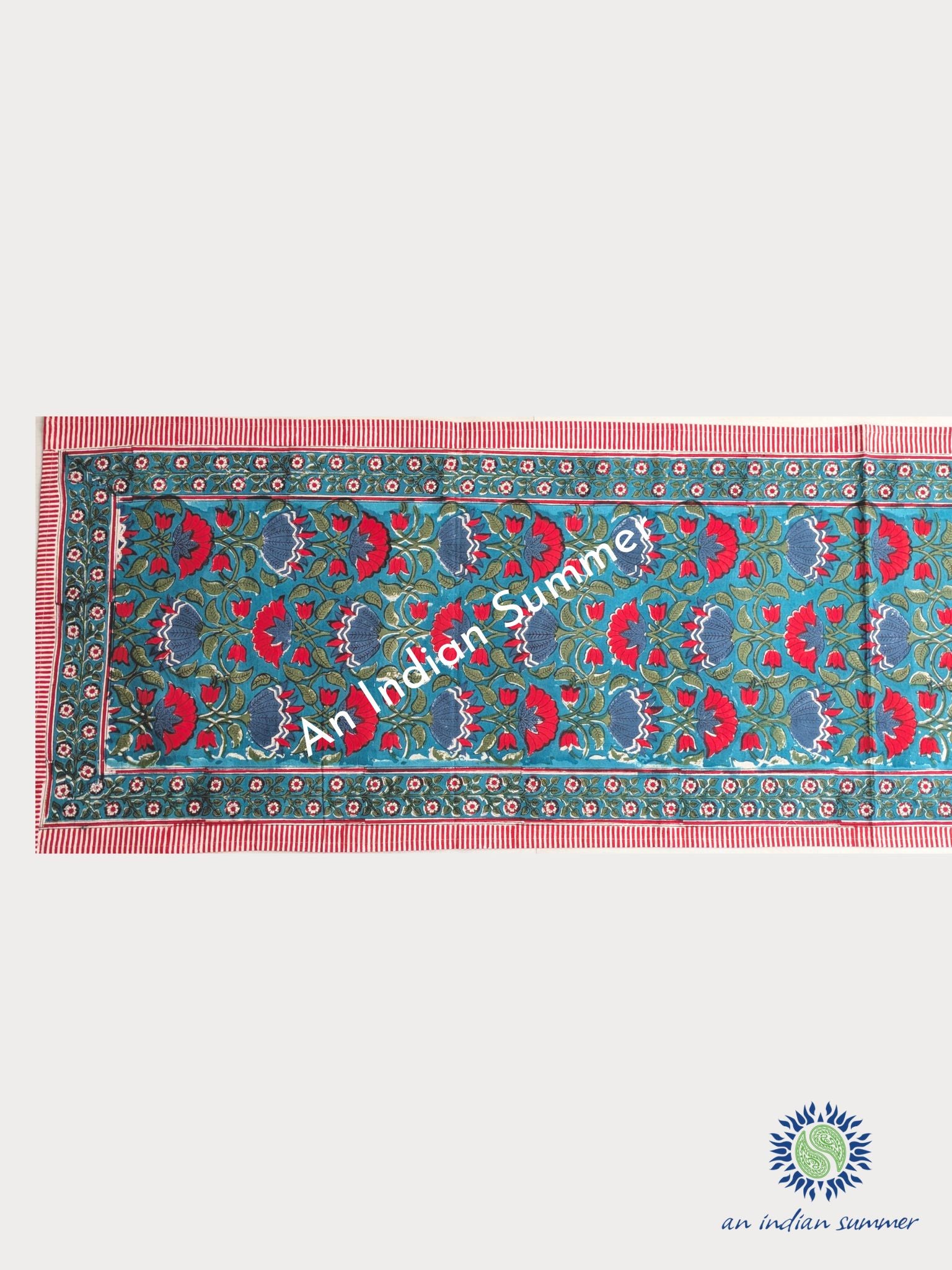 Table Runner Lotus Teal Red