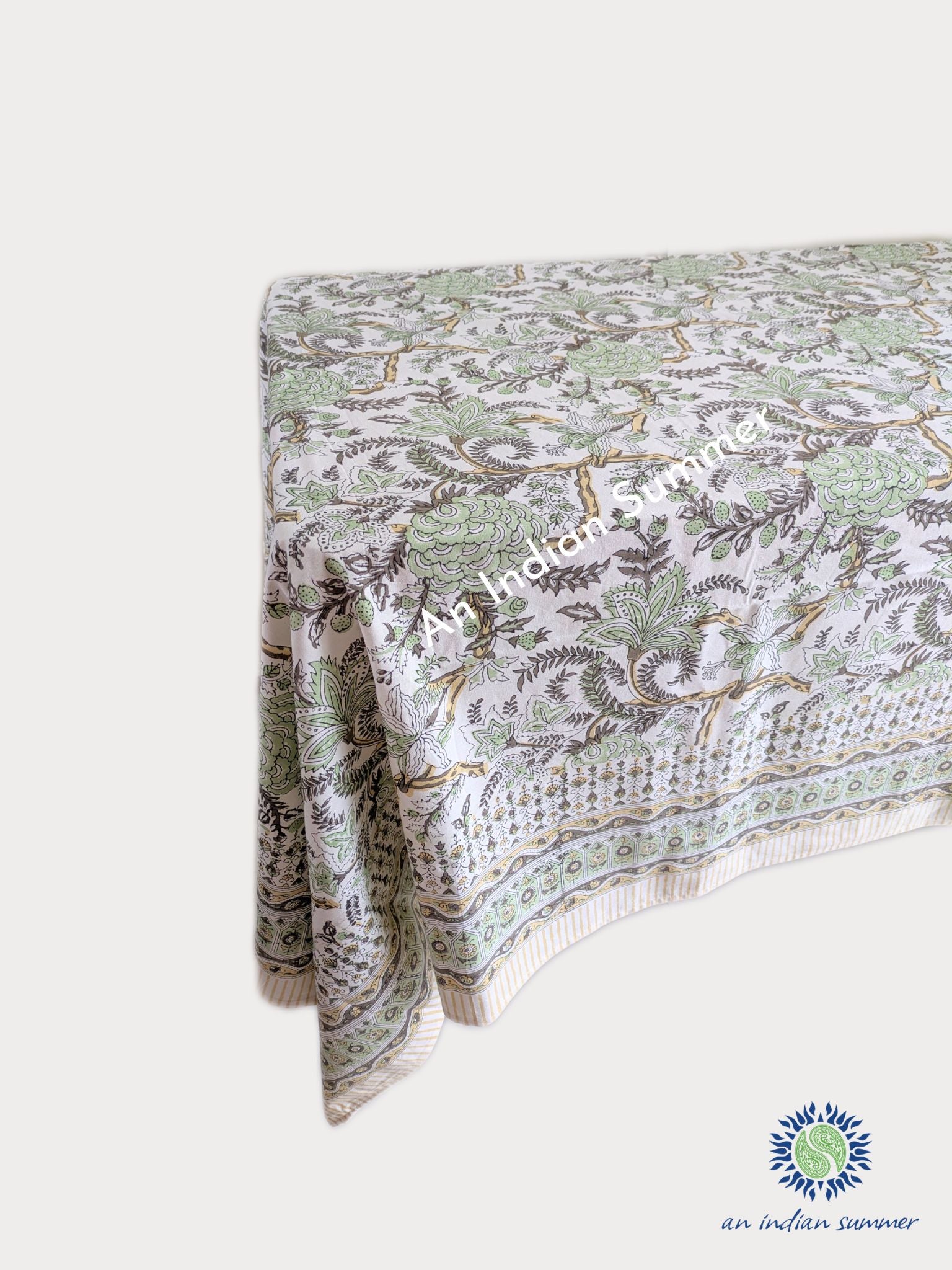 Beautiful hand block printed floral tablecloth made from 100% heavyweight cotton.